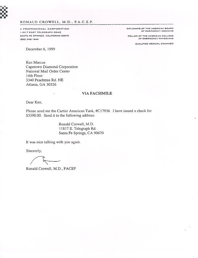 Please send me the Cartier American Tank, #C17936. I have issued a check for $3590.00.