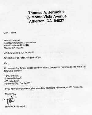 Upon receipt of funds, please send the above referenced Patek Philippe to me at the following address. If you have any questions, please call my assistant.