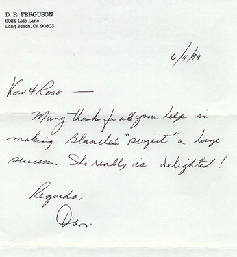 Many thanks for all your help in making Blanche's "project" a huge success. She really is delighted!